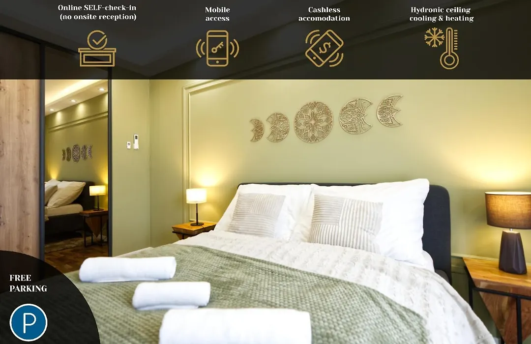 A Lonyay Downtown Apartment By Firsthost vendégei számára erkélyt, nappalit és konyhát biztosít, valamint olyan modern kényelmeket, mint a klímaberendezés.